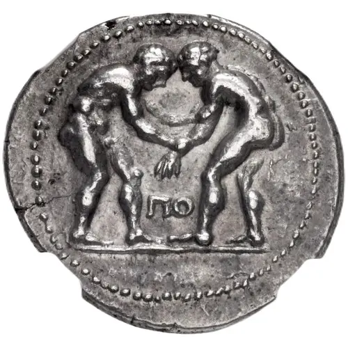 | Ön yüz açıklaması | Two wrestlers beginning to grapple with each other. Between them, ΠO. |
