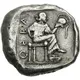 | Reverse description | Female figure (Harmonia?), wearing long chiton, seated right, holding crested Corinthian helmet in her left hand, right hand on her hip, left foot resting on a footstool; ΘEBA upward on left; all within square incuse. |