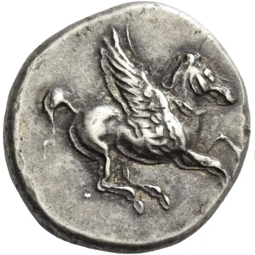 | Reverse description | Head of Athena facing left, wearing a Corinthian helmet. Behind her the letter Σ and a club. Inscription on the left field. |