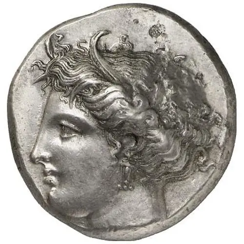 | Obverse description | Head of Persephone to left, wearing wreath of grain leaves and triple-pendant earring |