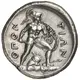 | Reverse description | Ajax, nude but for helmet, moving right, holding short sword in his right hand and, in his left, shield adorned with a serpent on the inside; below, on ground, crested helmet to left with two spears with points to left and right |