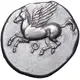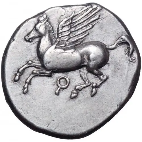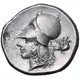 | Reverse description | Head of Athena left, wearing Corinthian helmet; E and a dove behind. |