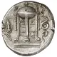 | Reverse description | Tripod with domed cover and fillets hanging from the handles; to right, serpent coiling left; to left, grain ear |