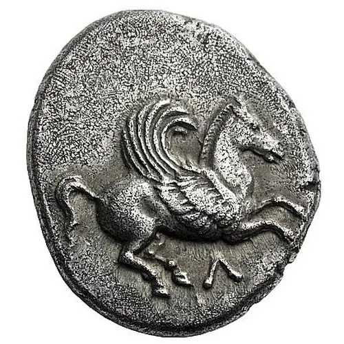 | Descrizione del dritto | Pegasus flying right, with curved wing |