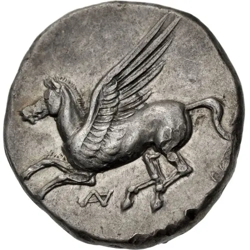 Beschrijving voorzijde Pegasos flying left; ANA monogram below.