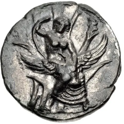 | Popis líce | Europa seated half-right in a tree, lifting her veil in her right hand and her left hand resisting an eagle as it ravages her. |