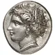| توضیحات روی سکه | Head of Persephone to left, wearing wreath of grain leaves, triple-pendant earring and pearl necklace |