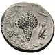 | Reversbeschreibung | Large bunch of grapes with tendrils and a leaf. To left, rose and ΔAM and to right, owl |