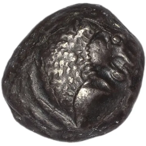 | Obverse description | Forepart of lion to left, head turned back to right. |