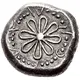 | Opis rewersu | Open rosette with eight rounded leaves. Large graining interrupted by the letters of the legend. |