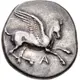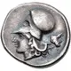 | Reverse description | Helmeted head of Athena left; to right, head of river-god Achelous right. |