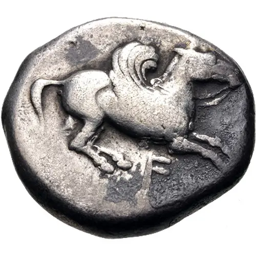 | Reverse description | Helmeted head of Athena facing right within incuse square. |