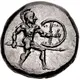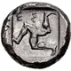| Obverse description | Helmeted and nude warrior (hoplite) advancing right, holding spear in right hand and round shield in left. |