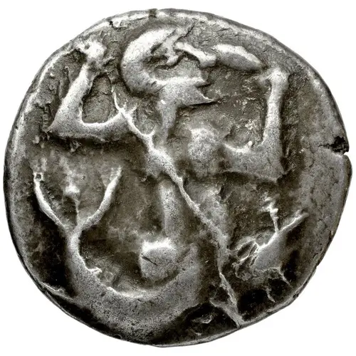 | Aversbeschreibung | Triton, half-man, half-fish, swimming right, stricking downwards with trident held in right hand; in left, conch shell. |