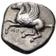 Obverse description Pegasos with curved wing flying to left.