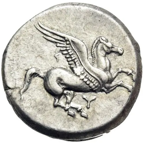 | Reverse description | Head of Athena to right, wearing Corinthian helmet; before, club. |