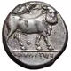 | توضیحات پشت سکه | Man-faced bull walking to right, head facing, crowned by Victory flying above to right. |