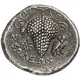 | Reversbeschreibung | Large bunch of grapes with tendrils and a leaf. To left, star and NI and to right, owl. |