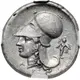 | Reverse description | Head of Athena left, wearing helmet adorned with wreath; A-P flanking neck truncation; to right, Athena Promachos standing right. |