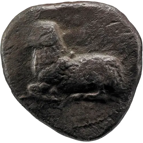 | Description du revers | Ram`s head left, branch before, all within dotted square in incuse punch. |