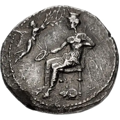 | توضیحات روی سکه | Aphrodite seated left, holding phiale; to left, small Eros flying right, crowning her; below throne, mouse left. |