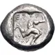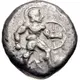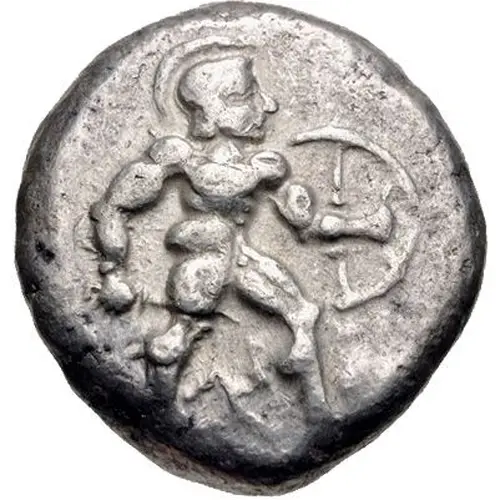 | Obverse description | Warrior advancing right, holding shield and sword; triskeles between legs. |
