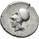 | Mô tả mặt sau | Head of Athena to left, wearing Corinthian helmet; behind neck guard, akanthos leaf. |