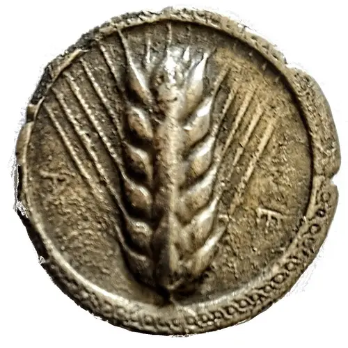 Obverse description Six-grained barley ear with small additional terminal grains; retrograde lettering.