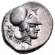| Reversbeschreibung | Head of Athena to right, wearing Corinthian helmet; behind neck, Pan. |