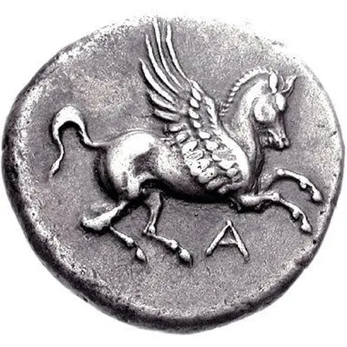 Artistry: The design adheres to the ubiquitous Corinthian colonial type, as referenced by Pegasi#115 and Ravel Colts#176. The obverse typically features Pegasus, the winged horse, often depicted in flight to the left, rendered with a powerful yet elegant form. The reverse commonly displays the head of Athena, patron goddess of Corinth, wearing a distinctive Corinthian helmet. While no specific engraver is identified, the consistent quality suggests skilled die-cutters working within an established artistic tradition, emphasizing clarity and recognizable iconography.