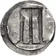 | Mô tả mặt sau | Incuse tripod as obverse, but wreaths and lower serpents relief, no serpents rising from the bowl; (retrograde P (koppa) to left, outline of crab to right, zig-zag line in exergue, radiate border. |