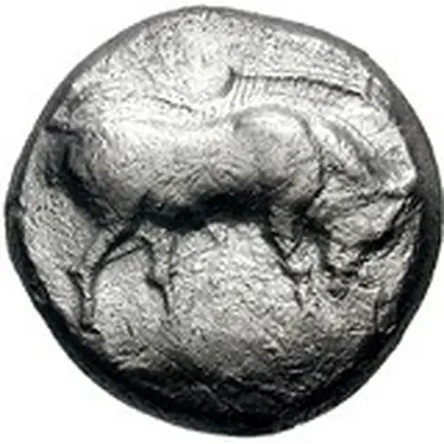 Obverse description Boar standing right, head lowered, city above