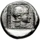 Reverse description Helmeted head of Athena right, dotted square border, city name vertically. All within an incuse square