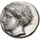 | Obverse description | Head of Persephone left, wearing wreath of grain ears, triple-pendant earring, and pearl necklace. |