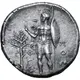 | Descripción del reverso | Warrior hero Apteros, called Ptolioikos, standing facing, his bearded head left, wearing crested helmet and cuirass, holding in his left hand a spear and shield decorated with a sunburst, his right is raised towards a sacred fir tree in left field. |