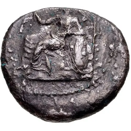 | Obverse description | Athena seated left, holding spear, resting on shield and trunk of olive tree behind |