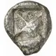 | Reverse description | Incuse square diagonally divided |