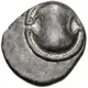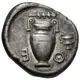 | Reverse description | Amphora; above, club right; kantharos to right, across lower field; all within circular incuse. |
