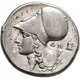 | Arka yüz açıklaması | Head of Athena to left, wearing Corinthian helmet; behind neck guard, ΔΩ and small altar. |
