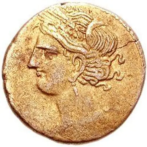 | Obverse description | Head of Tanit left, wreathed with corn, wearing necklace and ear-ring, A at base of corn-ears. |