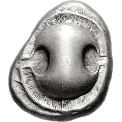 | Reverse description | Nude Herakles advancing right, holding club in his right hand and bow in his left; all within square incuse. |