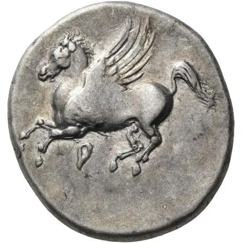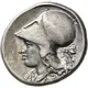 | Reverse description | Head of Aphrodite to left, wearing Corinthian helmet and pearl necklace; below chin, A; behind neck, bee flying to left. |