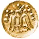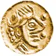 | Aversbeschreibung | Stylized head facing right; three anullets behind. Two pellets in right field. |
