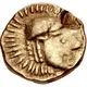 Descrição do anverso Stylized head (perhaps Alexander the Great) facing right with radiating lines around. countermark: ΔΛ