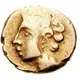 | Description du revers | Horse prancing left; spiral ornament above, amphora below. |