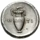 | Opis rewersu | Amphora; dolphin left above, magistrate name across field; all within incuse concave circle. |