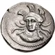 Reverse description Draped bust of Athena facing slightly left, wearing triple-crested Attic helmet.