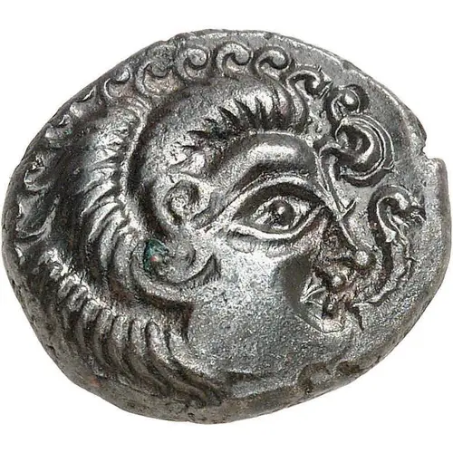 | Arka yüz açıklaması | Stylized horse, with aviform head, galloping right; above, remains of the charioteer`s head; between the legs, a boar on the right. |