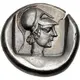 توضیحات پشت سکه Head of Athena right, wearing crested Corinthian helmet, within incuse square.