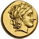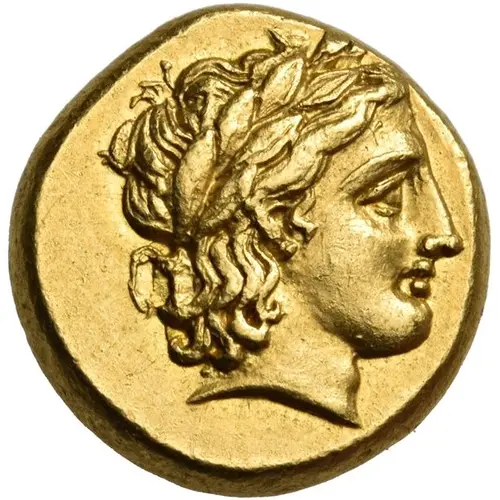 | Popis líce | Laureate head of Apollo to right, his hair falling down the back of his neck. |